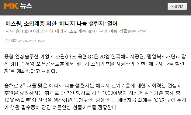 [매일경제] 에스원, 소외계층 위한 '에너지 나눔 챌린지' 열어