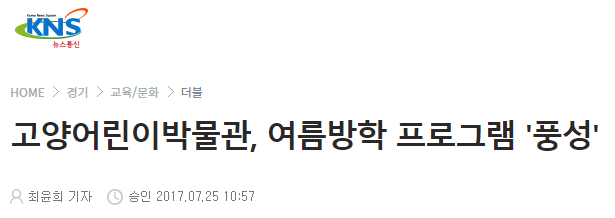 [KNS뉴스통신] 고양어린이박물관, 여름방학 프로그램 '풍성'