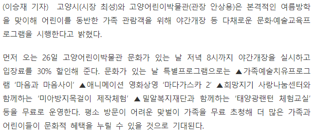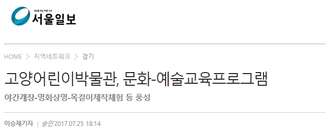 [서울일보] 고양어린이박물관, 문화-예술교육프로그램