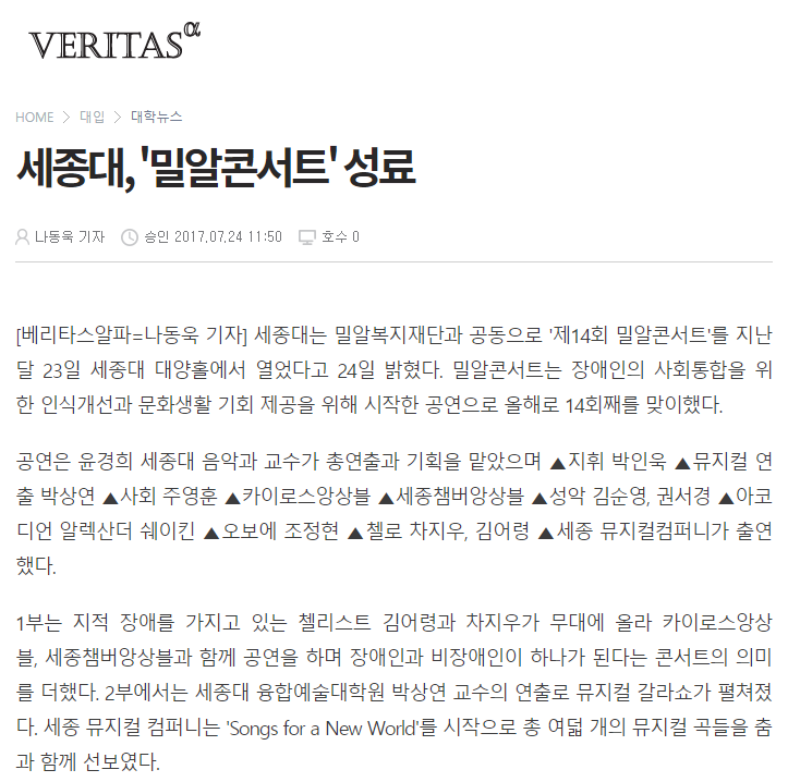 이전 [국제뉴스] 세종대-밀알복지재단, '밀알콘서트' 성황리 개최 다음 [머니투데이] 세종대-밀알복지재단, 밀알콘서트 성료