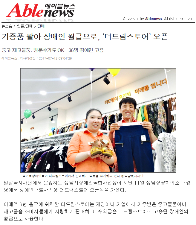 [에이블뉴스] 기증품 팔아 장애인 월급으로, ‘더드림스토어’ 오픈