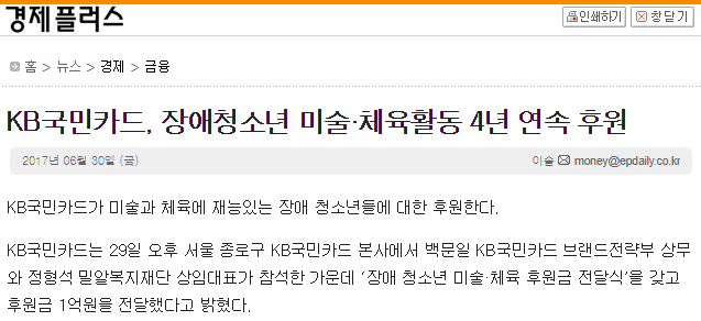 [경제플러스] KB국민카드, 장애청소년 미술·체육활동 4년 연속 후원