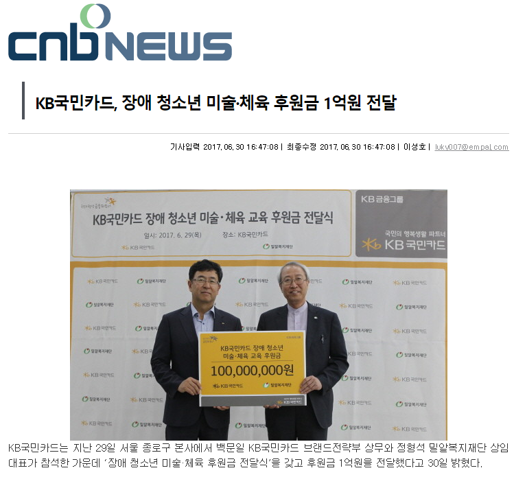 [CNB뉴스] KB국민카드, 장애 청소년 미술·체육 후원금 1억원 전달