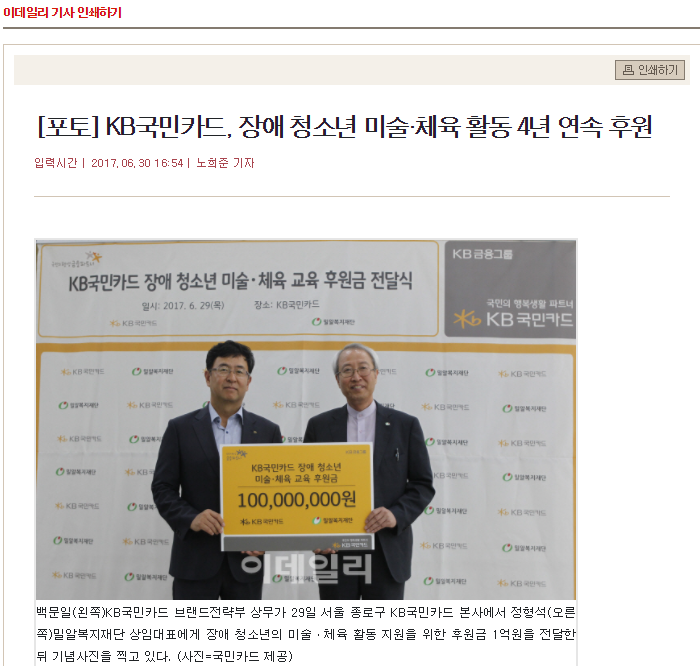 [CNB뉴스] KB국민카드, 장애 청소년 미술·체육 후원금 1억원 전달