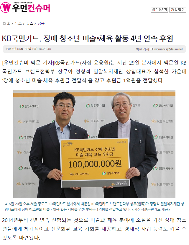 [우먼컨슈머] KB국민카드, 장애 청소년 미술?체육 활동 4년 연속 후원