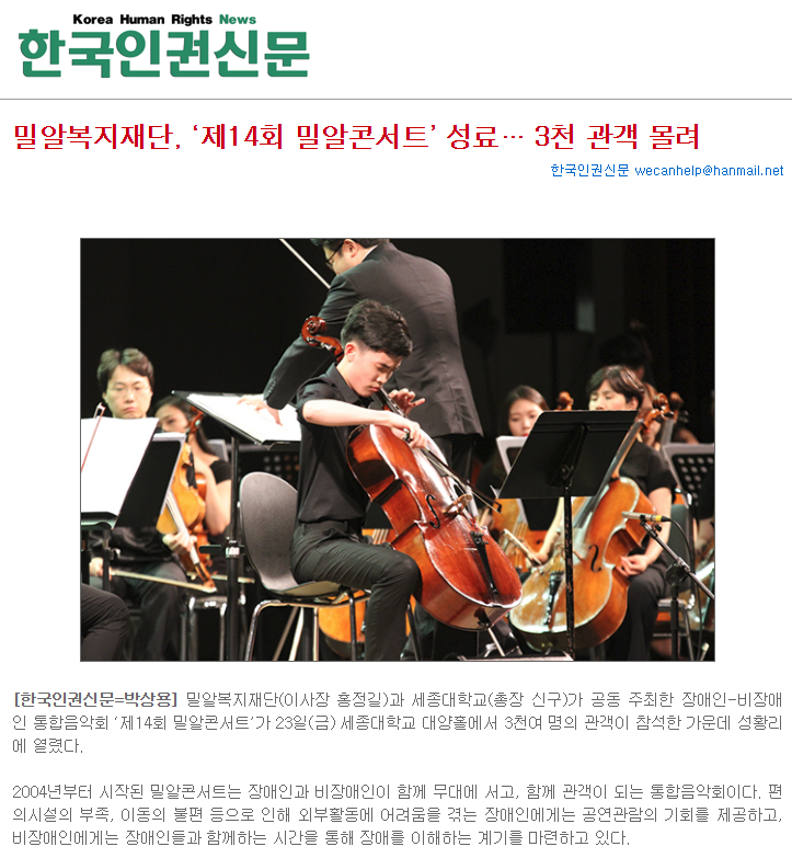 [한국인권신문] 밀알복지재단, ‘제14회 밀알콘서트’ 성료… 3천 관객 몰려