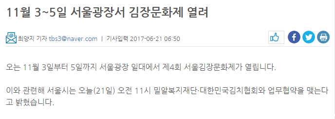 [TBS] 11월 3~5일 서울광장서 김장문화제 열려