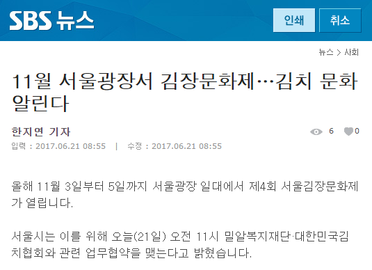 이전 [헤럴드경제] 서울시, 11월 ‘김장문화제’ 위한 업무협약 체결 다음 [소믈리에타임즈] 서울시, '서울김장문화제' 업무협약 체결로 김장나눔 확대 추진