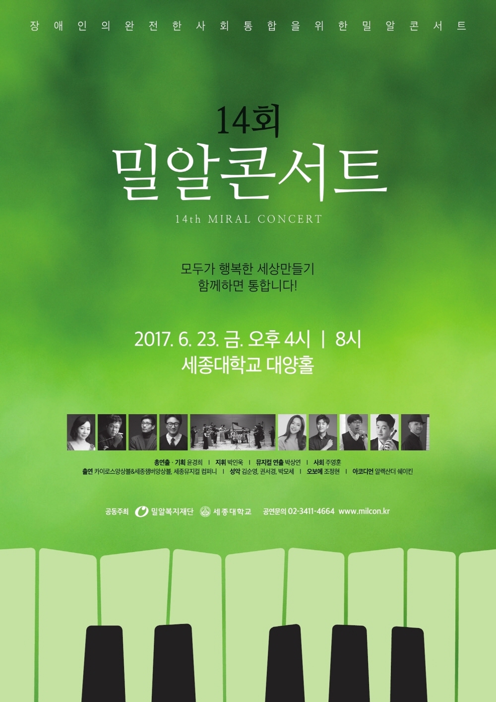 ◎ 국내 최대 장애인-비장애인 통합콘서트… 공연관람 어려운 장애인에게 문화향유 기회 제공하고 비장애인에게는 장애인을 이해하는 계기 마련밀알복지재단(이사장 홍정길)이 6월 23일(금) 세종대학교 대양홀에서 제14회 밀알콘서트를 개최한다.
