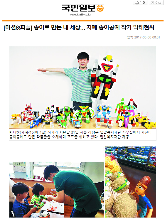 [국인일보] <미션&피플> 종이로 만든 내 세상… 자폐 종이공예 작가 박태현씨