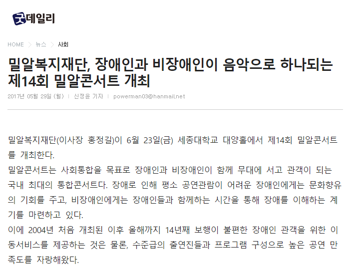 [굿데일리] 밀알복지재단, 장애인과 비장애인이 음악으로 하나되는 제14회 밀알콘서트 개최