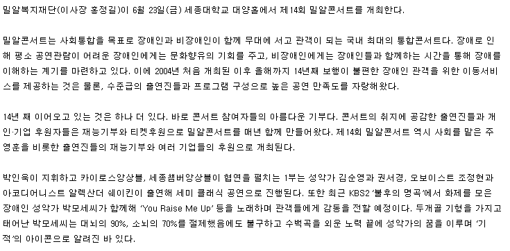 [e뉴스페이퍼] 밀알복지재단, 장애인과 비장애인이 음악으로 하나되는 제14회 밀알콘서트 개최