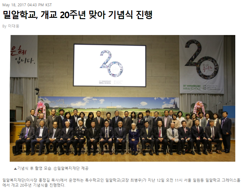 [크리스찬투데이] 밀알학교, 개교 20주년 맞아 기념식 진행