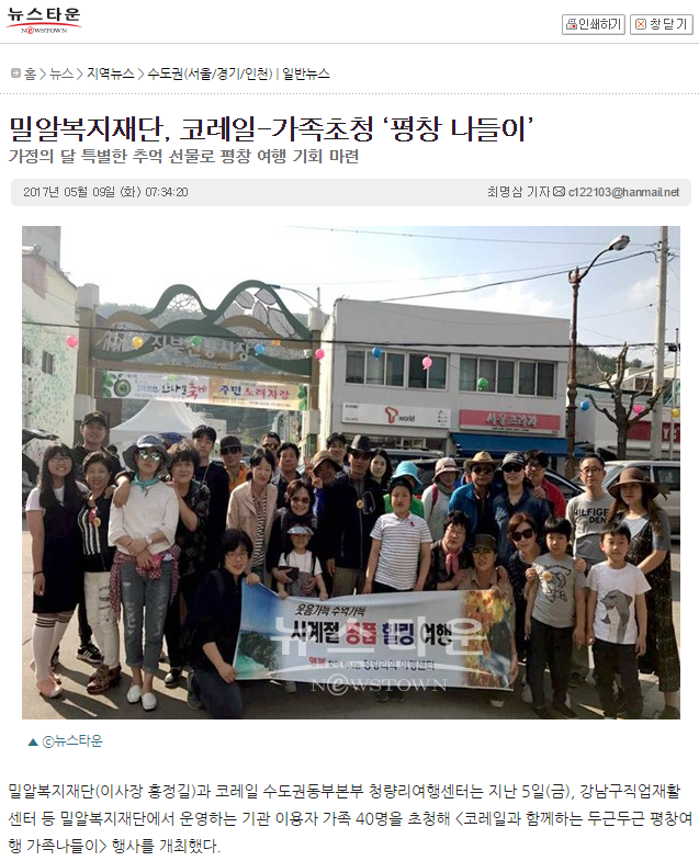 [뉴스타운] 밀알복지재단, 코레일-가족초청 ‘평창 나들이’