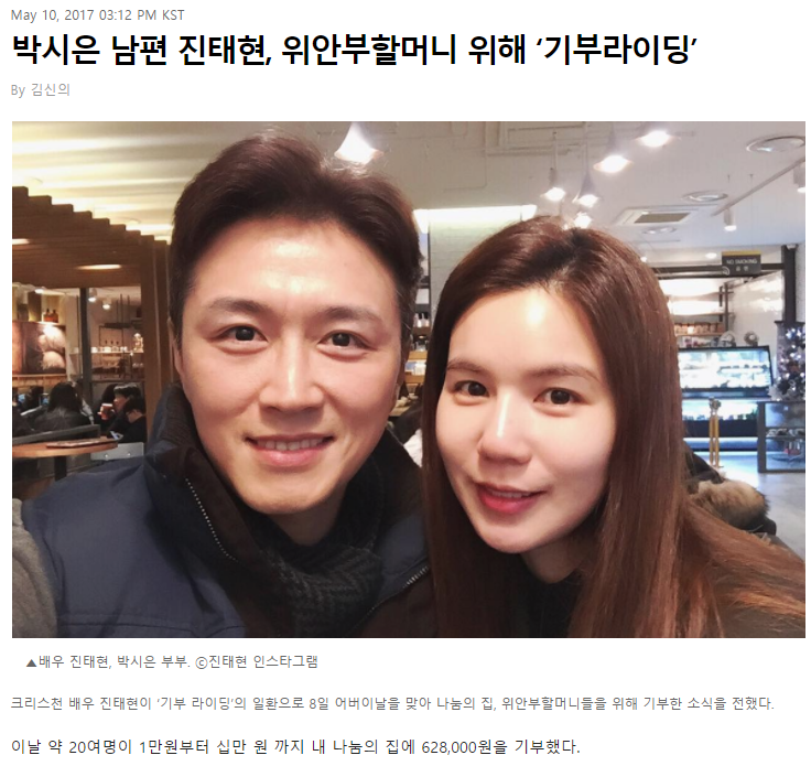 [크리스천투데이] 박시은 남편 진태현, 위안부할머니 위해 ‘기부라이딩’