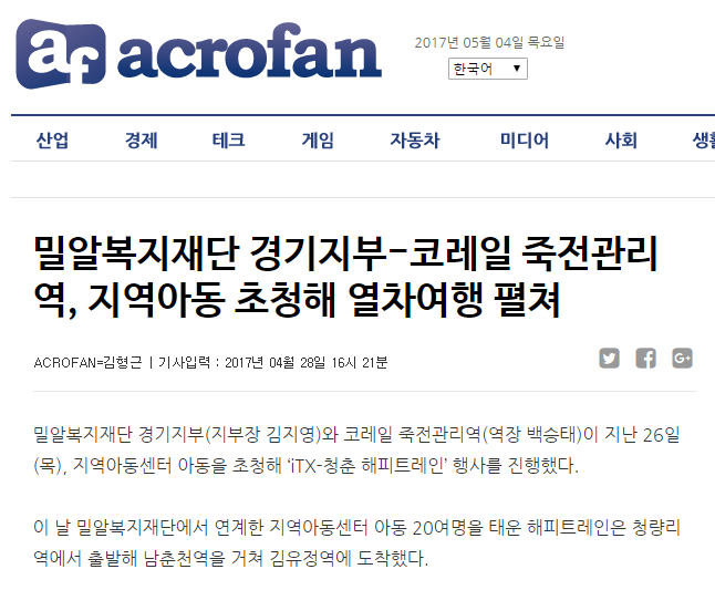 [아크로팬] 밀알복지재단 경기지부-코레일 죽전관리역, 지역아동 초청해 열차여행 펼쳐