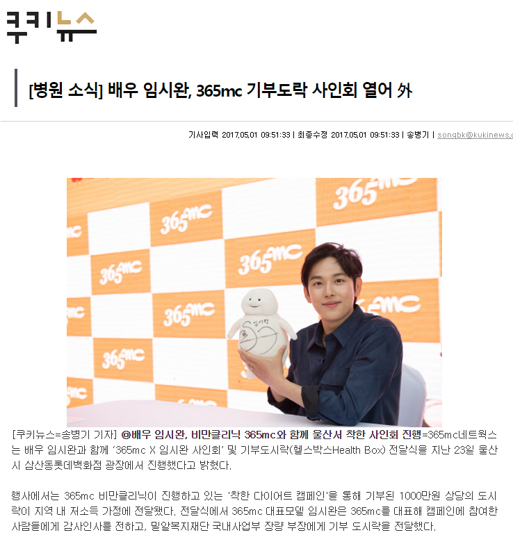 [쿠키뉴스] 배우 임시완, 365mc 기부도락 사인회 열어 外