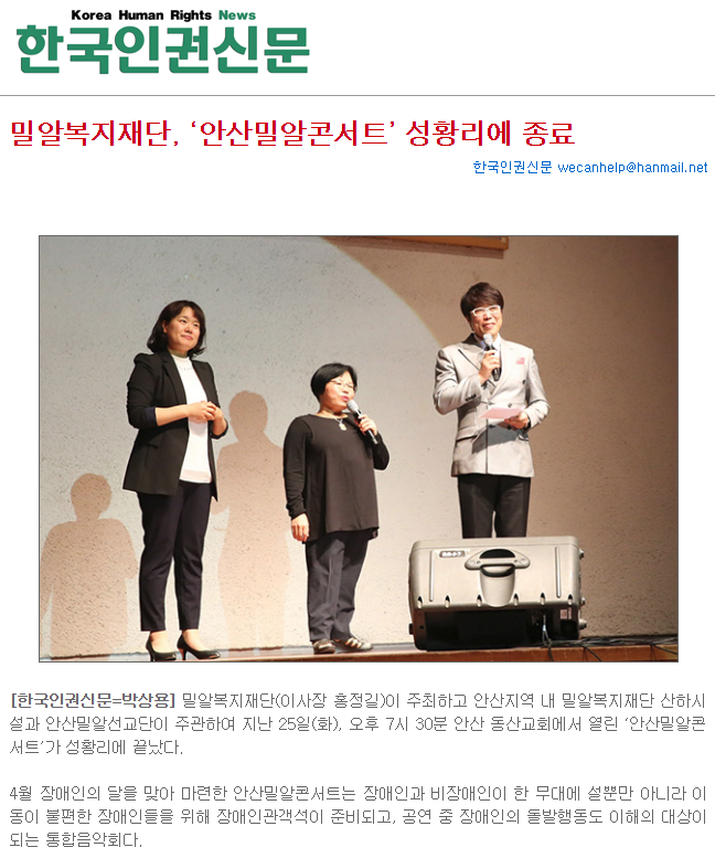 [한국인권신문] 밀알복지재단, ‘안산밀알콘서트’ 성황리에 종료