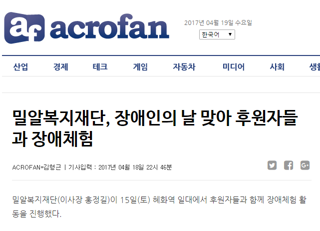 [아크로팬] 밀알복지재단, 장애인의 날 맞아 후원자들과 장애체험