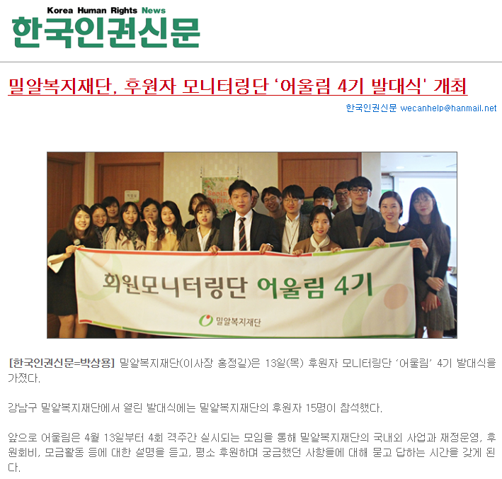 [한국인권신문] 밀알복지재단, 후원자 모니터링단 ‘어울림 4기 발대식' 개최