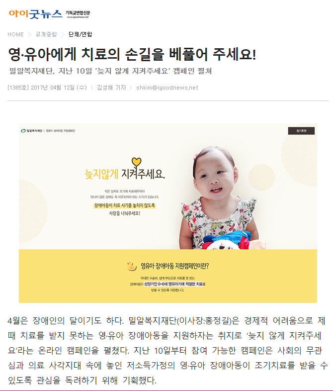 [아이굿뉴스] 영·유아에게 치료의 손길을 베풀어 주세요!