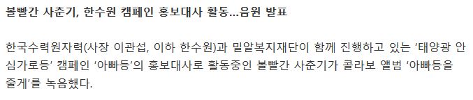[스포츠동아] 볼빨간 사춘기, 한수원 캠페인 홍보대사 활동…음원 발표