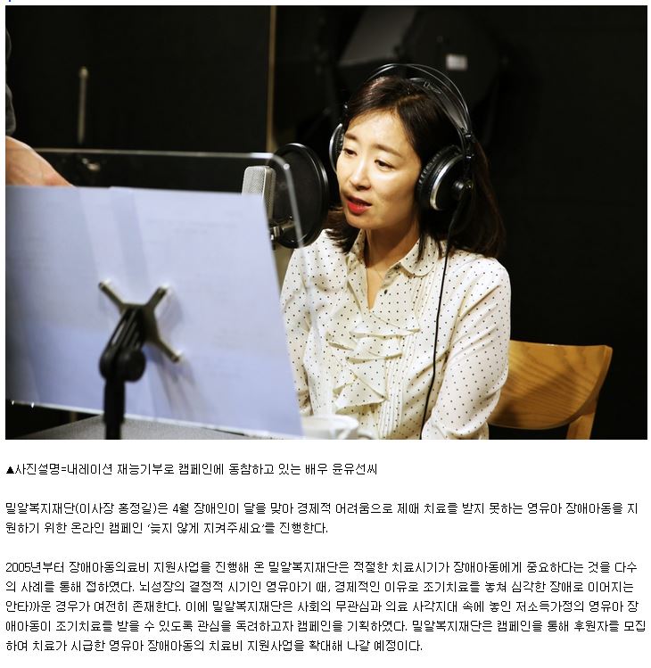 [e뉴스페이퍼] 밀알복지재단, 장애인의 달 맞아 영유아 장애아동 지원 캠페인 진행