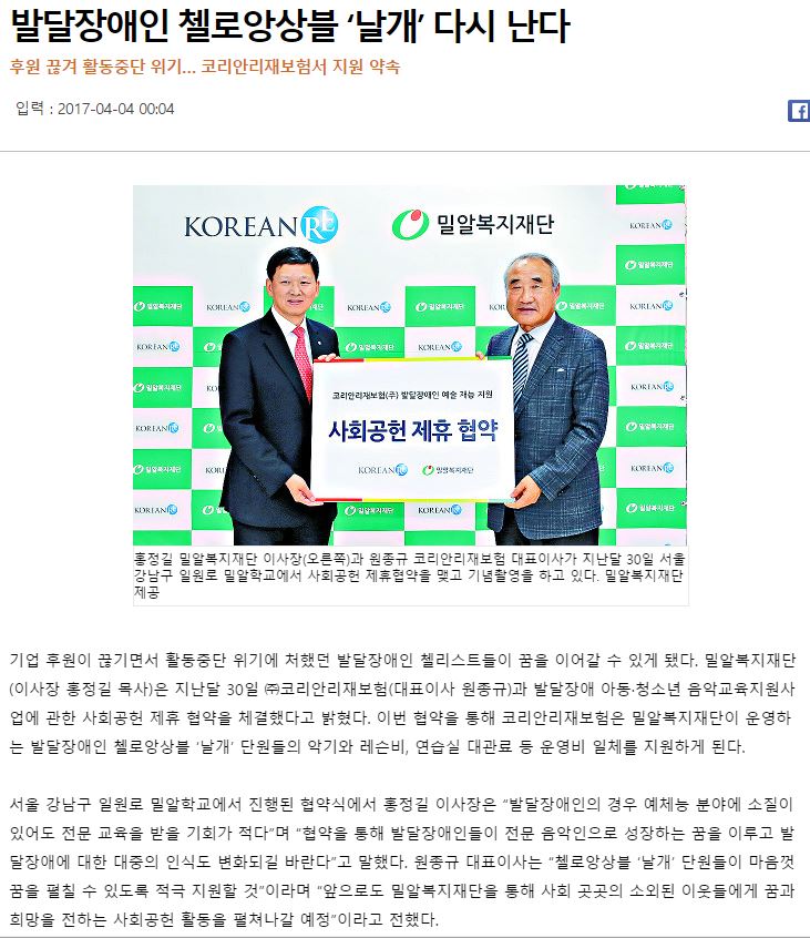 [국민일보] 발달장애인 첼로앙상블 ‘날개’ 다시 난다