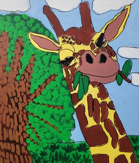 현승진, 기린, 2023. Acrylic and marker on canvas, 45.5x53cm. |