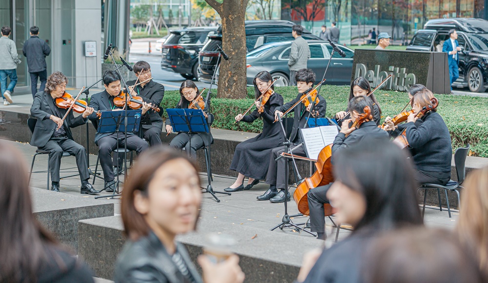 음악회 형태로 진행된 이날 행사에는 밀알복지재단이 운영하는 발달장애인 예술단 ‘브릿지온 앙상블’이 출연해 클래식부터 BTS의 ‘퍼미션 투 댄스’ 등 다채로운 연주를 선보였다. 특히 점심시간을 활용한 야외 행사로 진행해 한국 딜로이트 그룹 임직원 뿐 아니라 여의도 국제금융센터 입주사 직원, IFC몰 방문객들로부터 관심을 받았다.