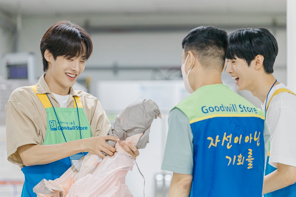 이날 미래소년은 장애인 직원들과 짝을 이뤄 여름캠핑용품 및 의류 상품화 작업에 참여했다. 상품화 작업이란 기부 받은 물품 중에서 판매 가능한 물품을 선별하고 정리하는 일이다. 멤버들은 장애인 직원의 도움으로 처음하기 어려운 작업들을 수월하게 해내며 수십여 점의 기증품을 정리해 굿윌스토어의 일손을 도왔다.