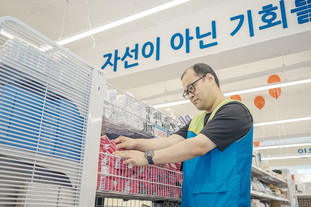 [사진3] 굿윌스토어 밀알성남단대오거리점에서 일하는 장애 직원 송해석 씨가 판매 물건을 정리하고 있다