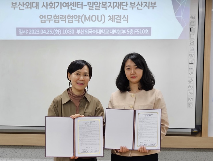밀알복지재단 부산지부(지부장 김아영)가 부산외국어대학교 사회기여센터(센터장 권유리아)와 사회공헌업무협약을 체결했다.