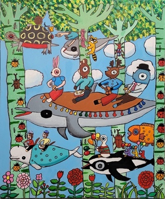 최석원, 우영우돌고래 상상나라, acrylic, marker on canvas