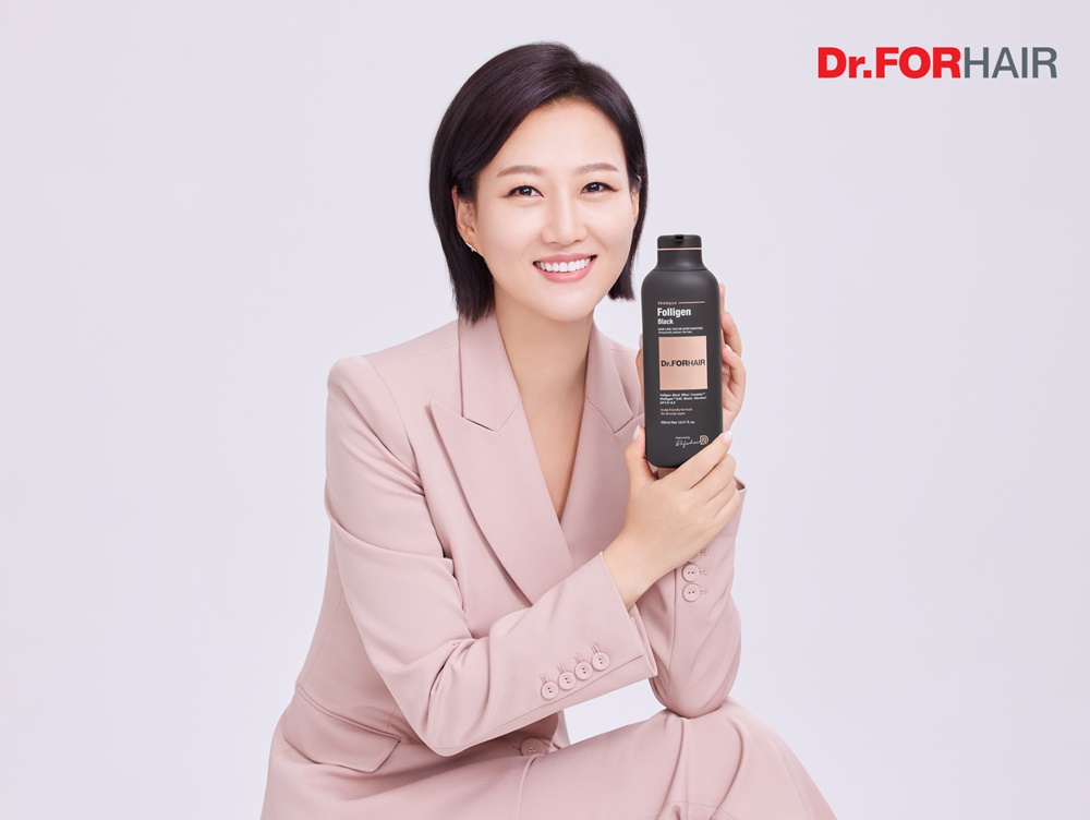 [사진1] 장윤정이 닥터포헤어 블랙샴푸를 소개하고 있다. 사진=닥터포헤어