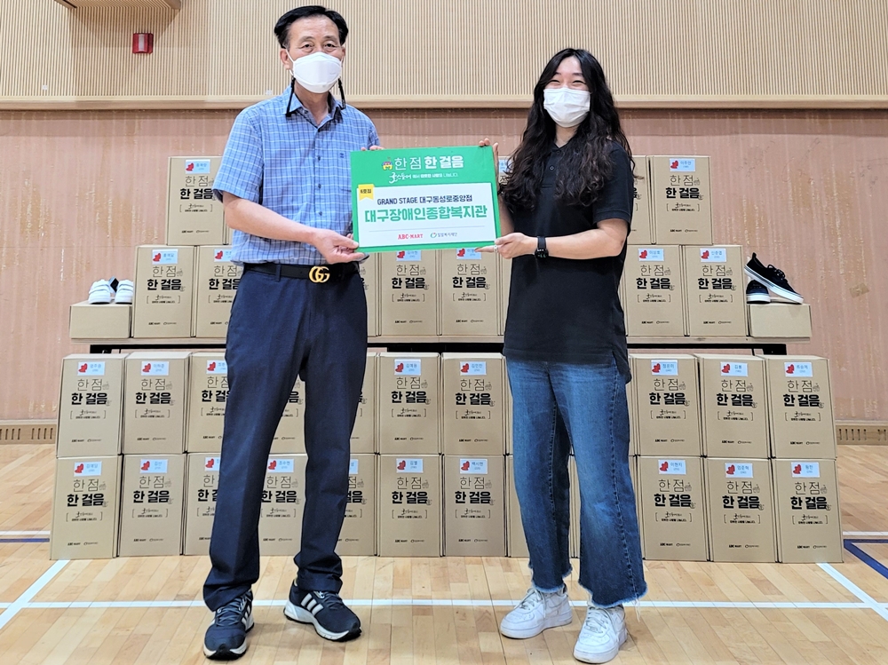ABC마트는 ‘한 점, 한 걸음’ 캠페인 외에도 취약계층 지원을 위해 밀알복지재단에 신발과 잡화 등을 기부했는데, 기부한 물품을 금액으로 환산 시 12억 7700만 원이 넘는다.