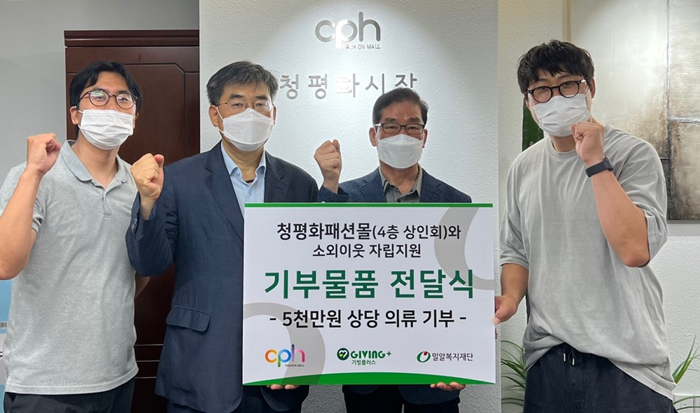 밀알복지재단 기빙플러스는 청평화시장 상인회가 취약계층 자립을 위해 5천만 원 상당의 의류를 기부했다고 밝혔다.