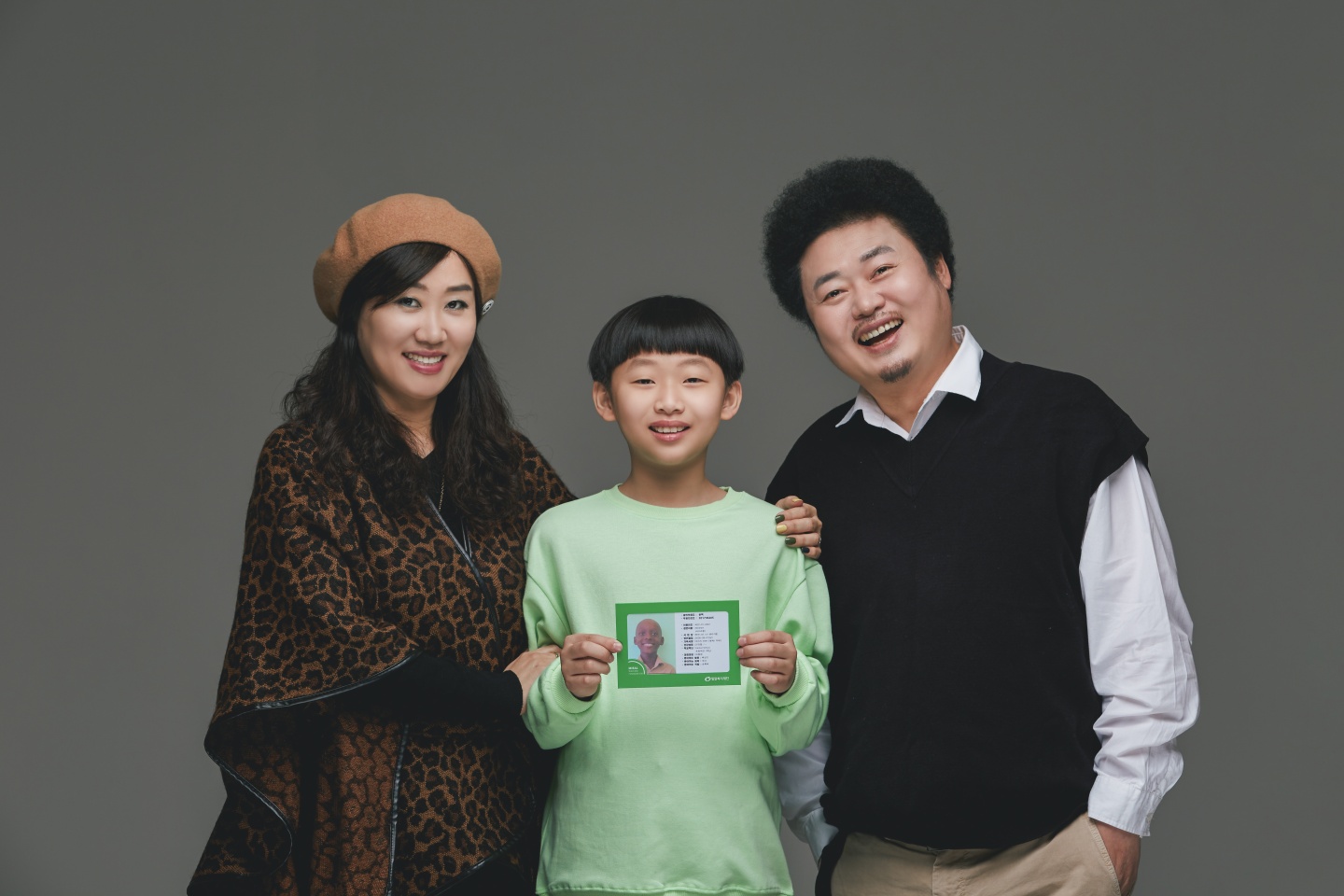 [사진1] 장애아동 돕는 러빙패밀리 캠페인 참여한 윤택 가족. 왼쪽부터 아내 김영조, 아들 임하임, 윤택.