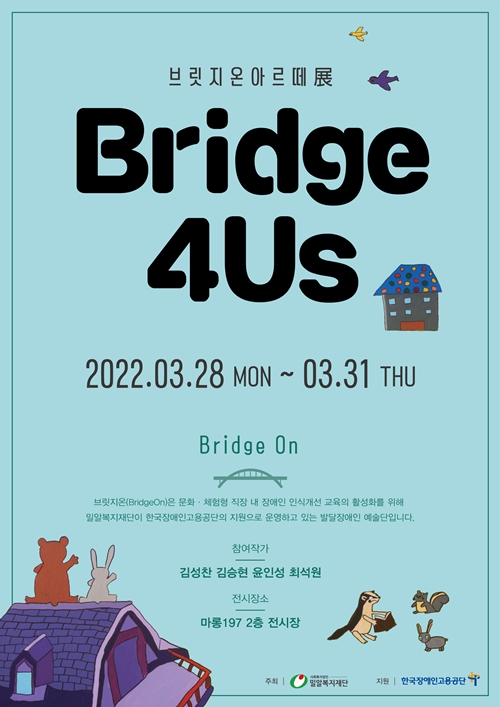 밀알복지재단(이사장 홍정길) 소속 발달장애인 작가들이 이달 28일부터 31일까지 ‘브릿지온 아르떼展, Bridge 4 Us(브릿지 포 어스) ? 우리를 잇는 4개의 다리’를 갖는다.