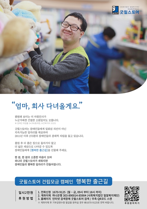 ■ ‘행복한 출근길’, 굿윌스토어 신규 매장 건립 위한 모금 캠페인… 장애인 일자리 창출 목적