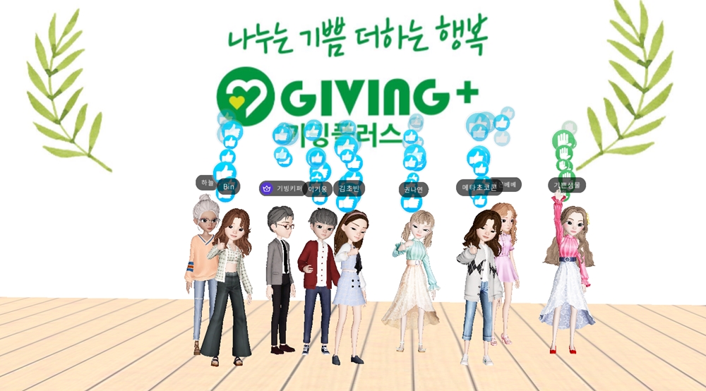 기빙플러스는 코로나19 상황 속 쌍방향 소통을 강화하고자 메타버스 발대식을 마련했다. 발대식에서는 서포터즈 임명식, 활동명 공모전 시상식 등이 진행됐으며, 기빙트리 서포터즈들은 메타버스 세상에서 각자 개성 넘치는 아바타를 생성해 발대식에 참여하며 색다른 디지털 소통의 시간을 가졌다.
