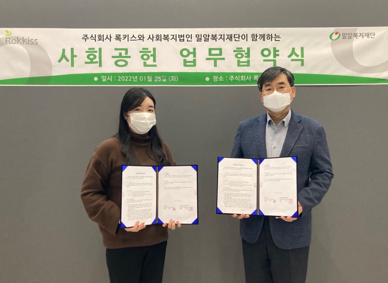 밀알복지재단 기빙플러스(본부장 김인종)가 ㈜록키스(대표 정윤주)와 25일(화) 사회공헌 업무 협약을 체결했다.