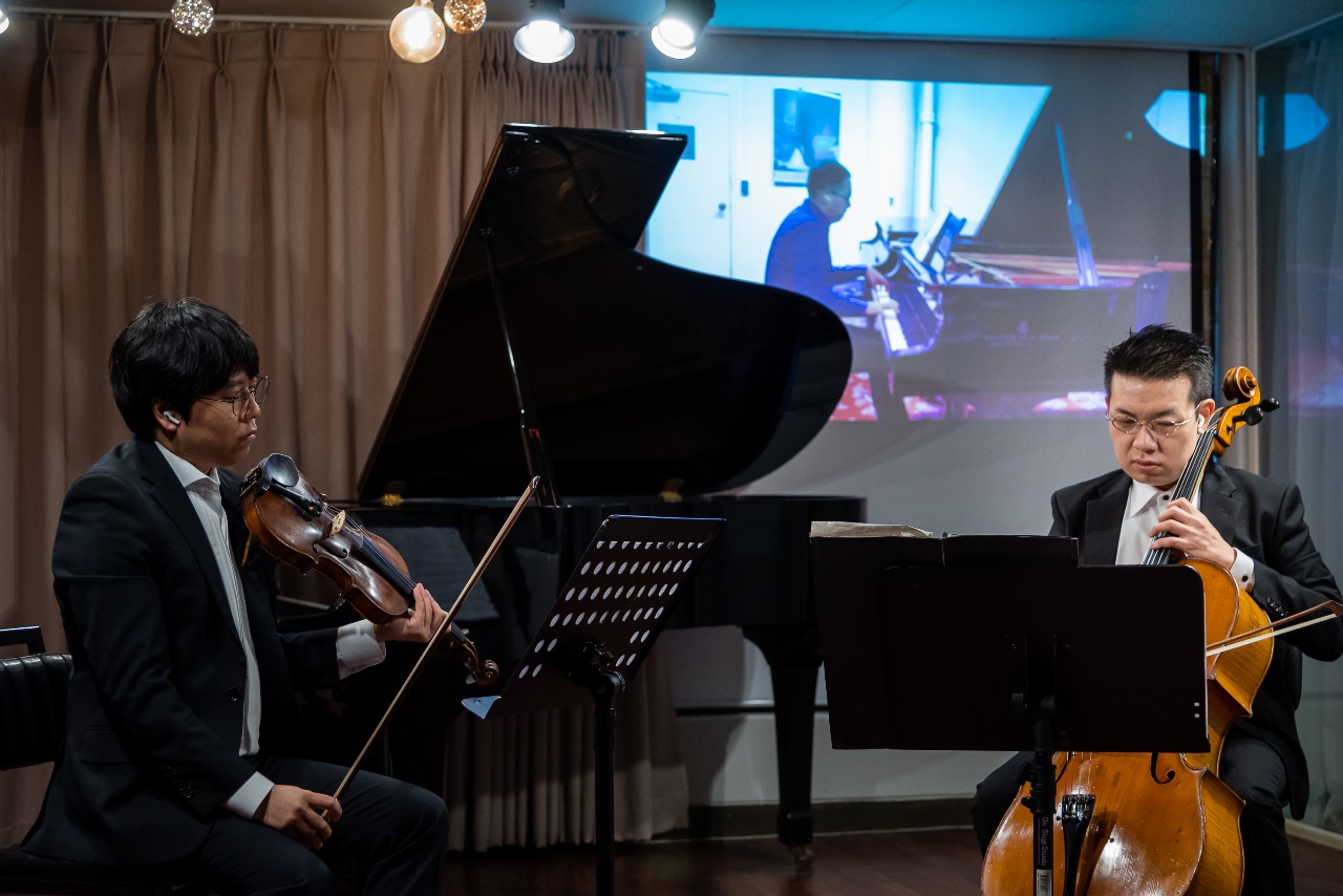 (왼쪽부터)바이올리니스트 박주경, 피아니스트 챙챙마, 첼리스트 김어령이 비대면 협연을 펼치고 있다.