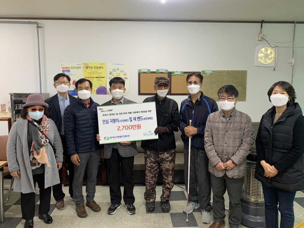 양 기관은 2일(화) 충북 영동군, 5일(금) 경기 포천시에서 각각 전달식을 하고, 지역별 장애인단체협의회를 통해 선발된 저소득 가정 시각·청각장애인에 ‘스마트 안심 넥밴드’와 ‘스마트 안심 지팡이’를 전달했다.