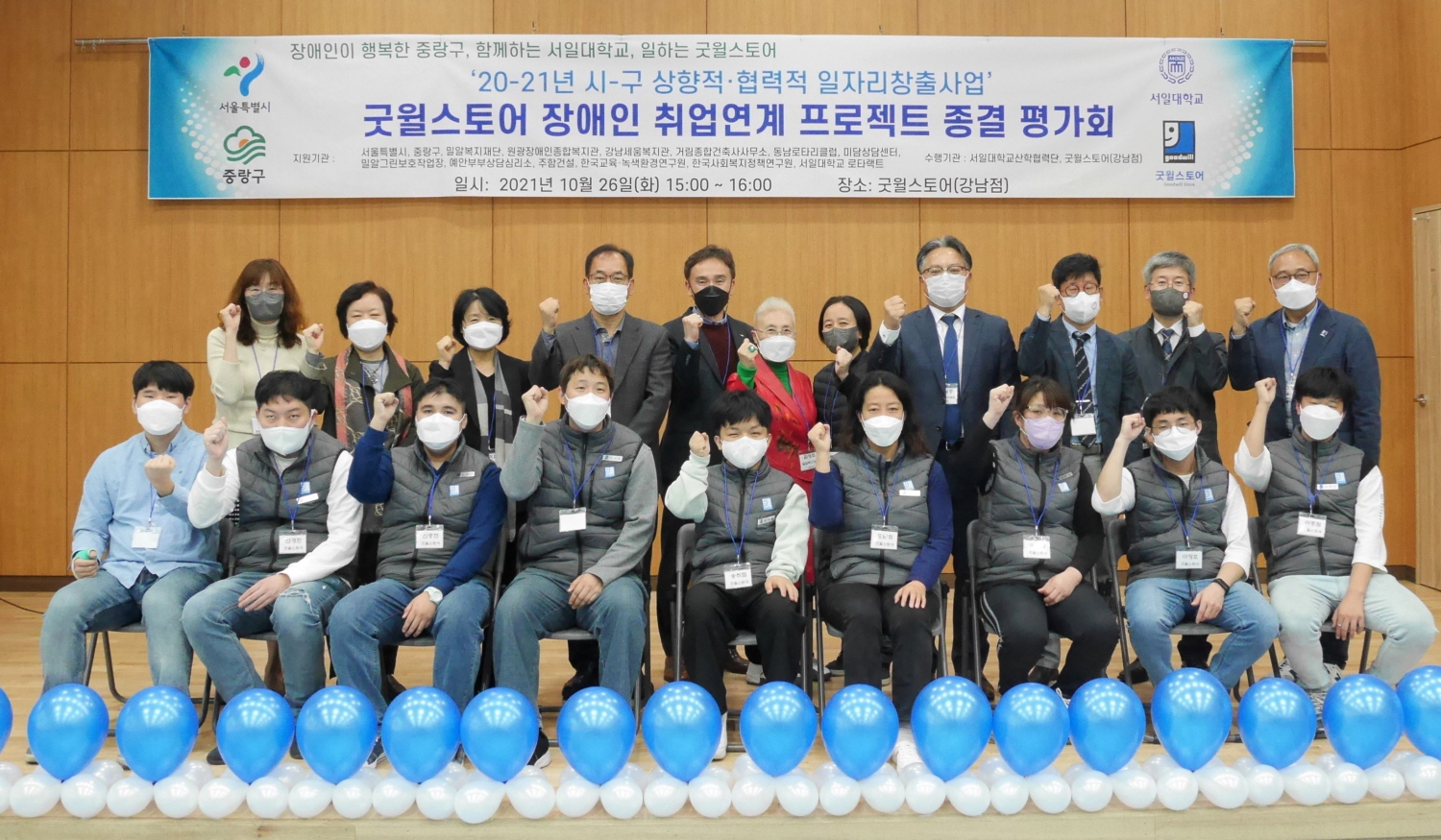 서울시와 중랑구청, 서일대학교 산학협력단이 2019년부터 관·산·학 협력으로 진행한 『시-구(서울시-중랑구청) 상향적·협력적 일자리창출- 굿윌스토어 장애인 취업연계 프로젝트』가 지난 26일(화) 서울 굿윌스토어 강남세움점에서 프로젝트 종결 평가회를 가졌다. 이 날 행사에는 프로젝트를 후원하고 협력한 류경기 중랑구청장, 전석기 서울시의원, 김영철 서일대학교 총장이 축하메시지를 전했으며, 한국교육·녹색환경연구원, 동남로터리클럽, 서일대학교 로타랙트의 자원봉사활동으로 진행됐다.
