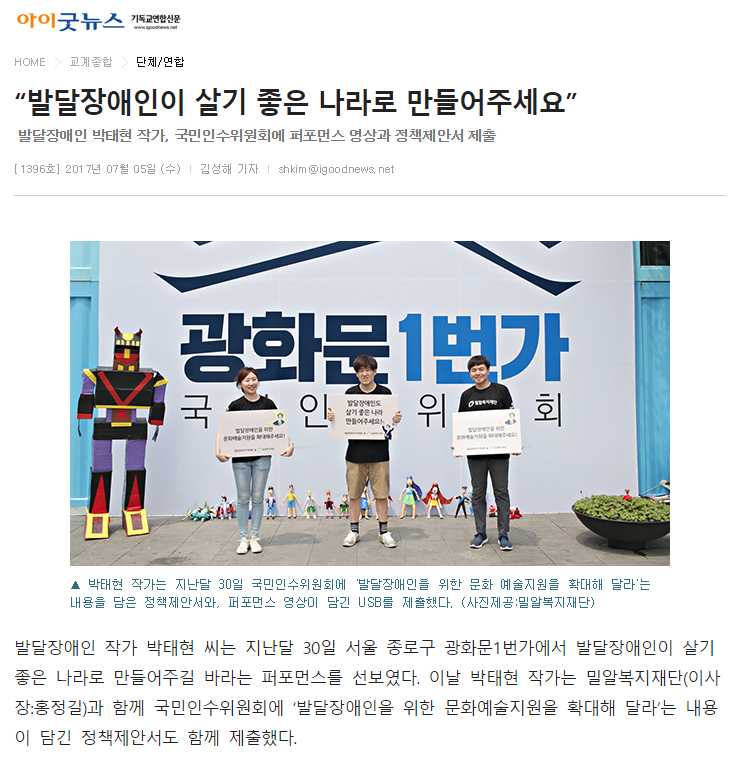 [아이굿뉴스] “발달장애인이 살기 좋은 나라로 만들어주세요”