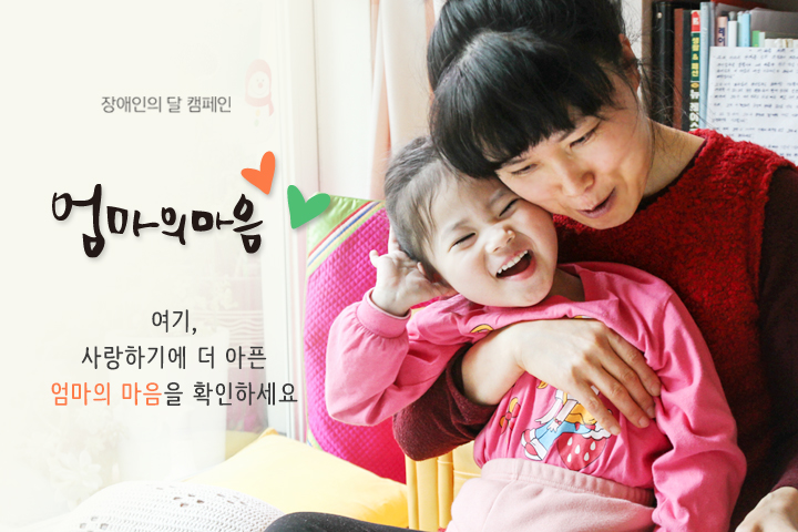 ‘엄마의 마음’ 캠페인은 장애아동 중에서도 특히 어려움이 많은 희귀난치성질환 장애아동과 이 아이들을 돌보는 엄마의 고충을 인터뷰 형식으로 풀어낸 캠페인입니다. 희귀난치성질환 장애아동의 경우 의료시설이 대부분 서울·경기권에 있어 접근하기도 어려울뿐더러 수술비나 의료소모품비 등으로 막대한 비용이 필요합니다. 또한 장애 아동 육아에 대한 부담과 자녀의 미래에 대한 불안감 등은 정서적으로 큰 스트레스를 줄 수밖에 없습니다. 우리 재단은 이러한 희귀난치성질환 장애아동과 그 엄마들을 위로하고, 정기후원을 통해 의료비 및 수술비, 생계비를 지원하고자 합니다.