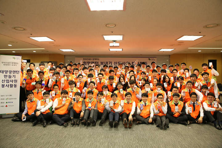 현대건설은 우리재단과 함께 해외 건설사업장 중 전력기반시설이 미비하여 빛 없는 야간생활을 하고 있는 에너지 빈곤지역에 임직원이 직접 직접 만들고 꾸민 태양광랜턴을 보내고 있습니다.