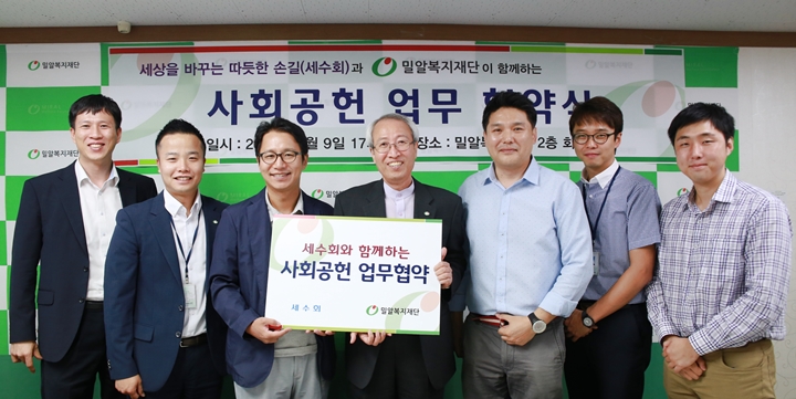한편, 밀알복지재단과 세수회는 지난 9일 수서동 밀알복지재단에서 지역 소외계층을 위한 사회공헌 업무 협약을 체결한 바 있습니다. 세수회는 이 날 열린 착한 바자회를 시작으로 밀알복지재단과 함께 소외계층을 위한 다양한 나눔활동에 나설 예정입니다.