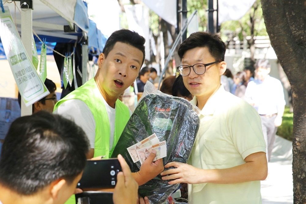 개그맨 박준형, 심현섭 등으로 구성된 ‘세수회’ 봉사단이 16일(수), 대치동 포스코사거리에서 밀알복지재단, 대치베스트상인회와 함께 빈곤장애아동 가정을 돕기 위한 ‘착한 바자회’를 개최했습니다.